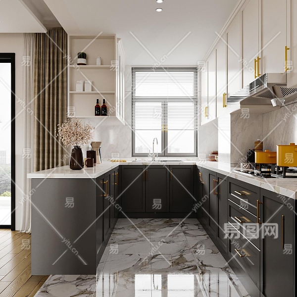 美式开放式厨房3D模型下载