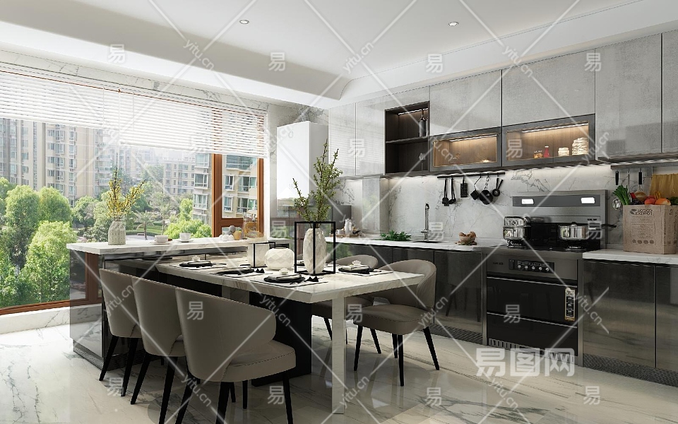现代厨房3D模型下载