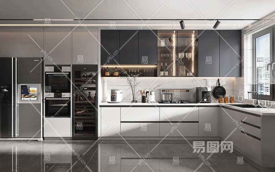现代封闭式厨房3D模型下载