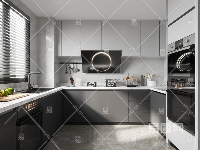 现代封闭式厨房3D模型下载