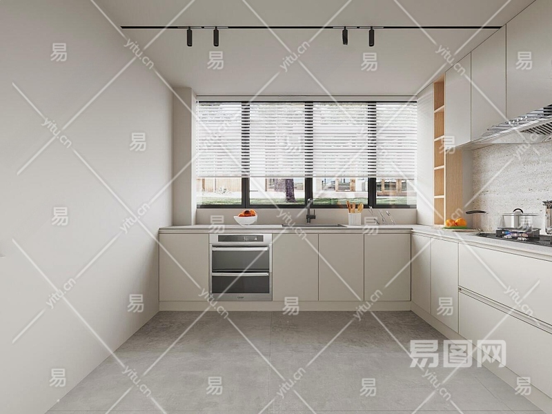 现代奶油风厨房3D模型下载