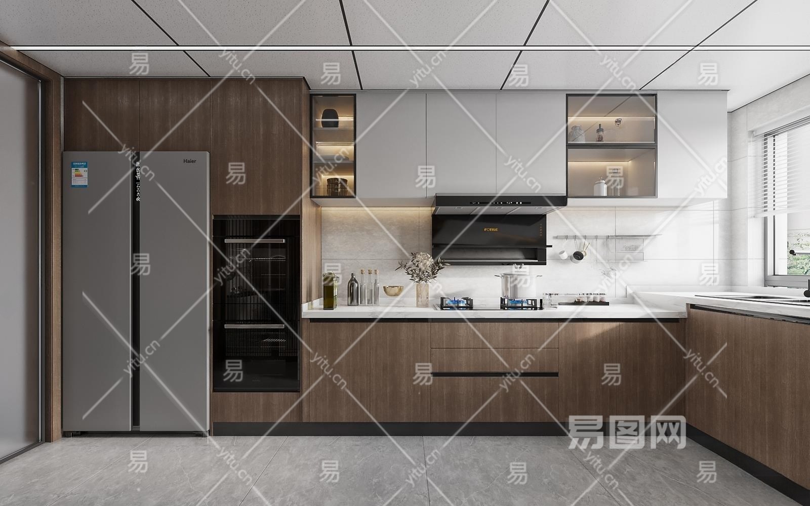 现代厨房3D模型下载