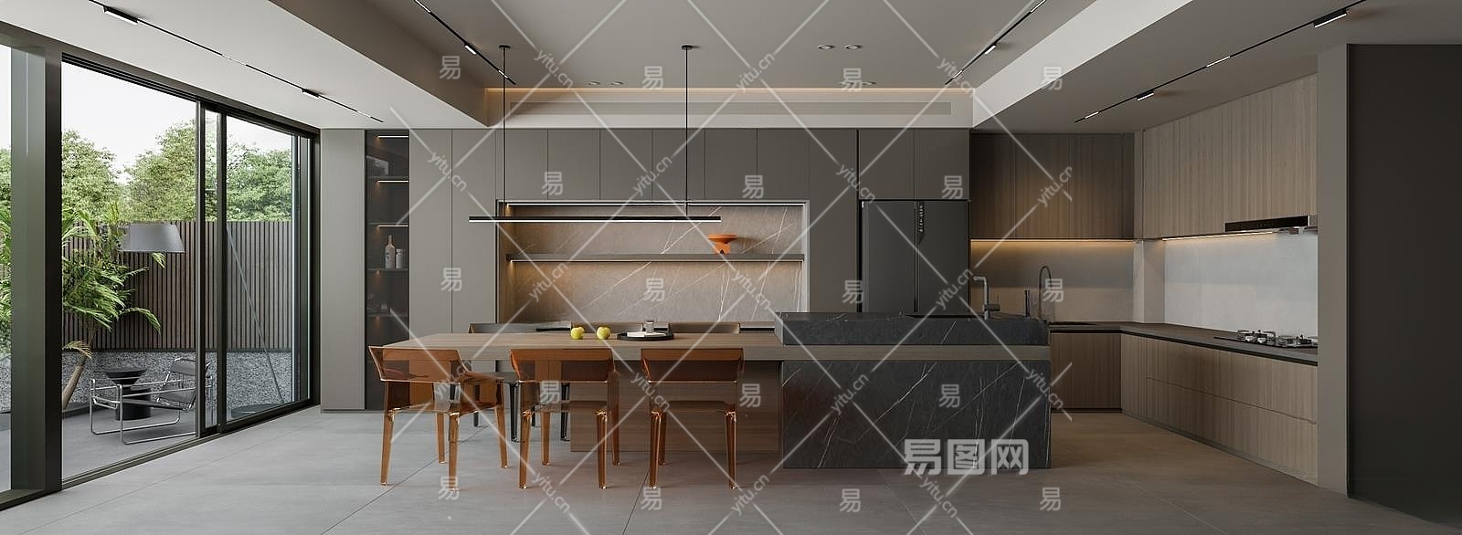现代开放式厨房3D模型下载