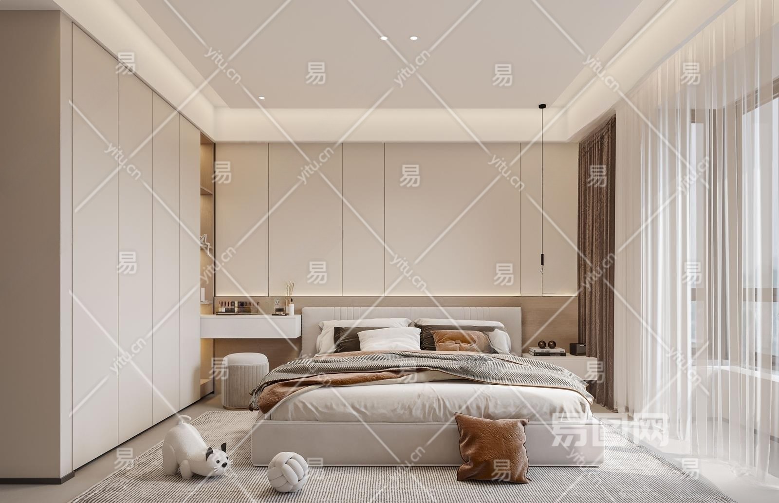 现代主卧3D模型下载
