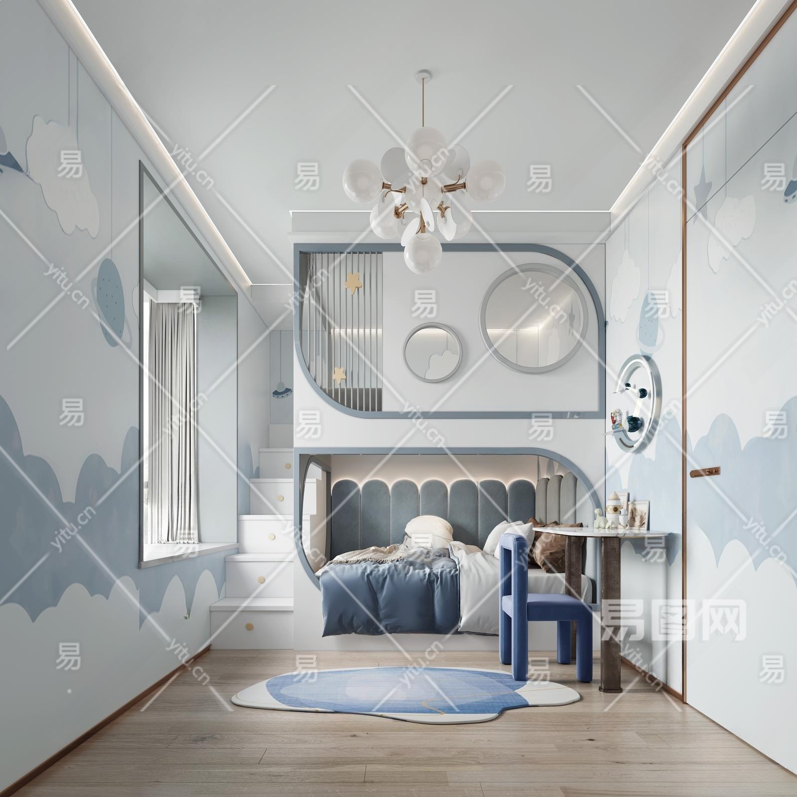 现代男孩儿童房3D模型下载