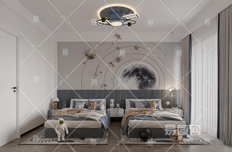 现代男孩儿童房3D模型下载
