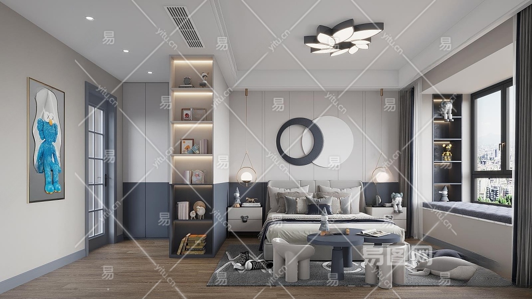 现代男孩儿童房3D模型下载