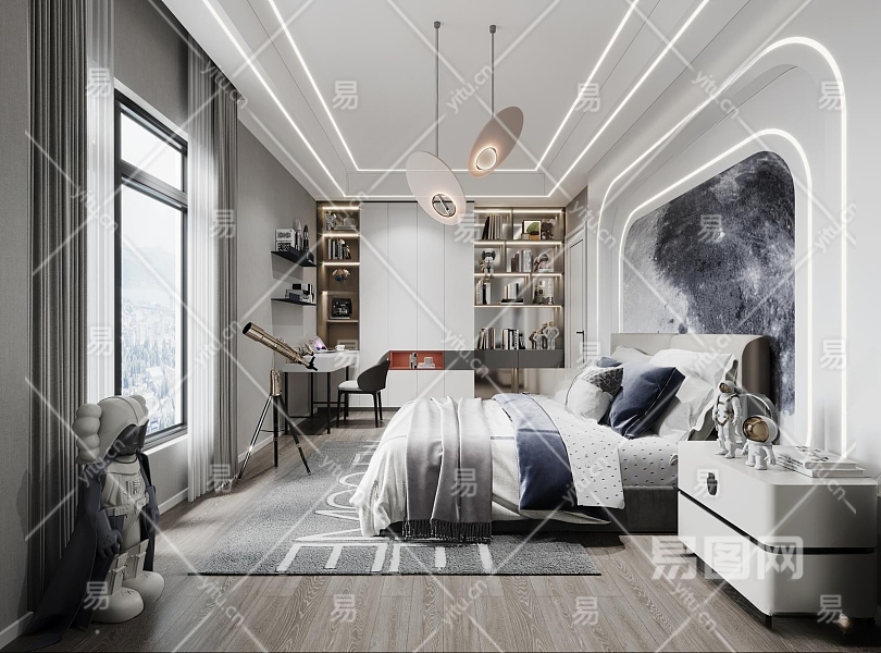 现代男孩房3D模型下载