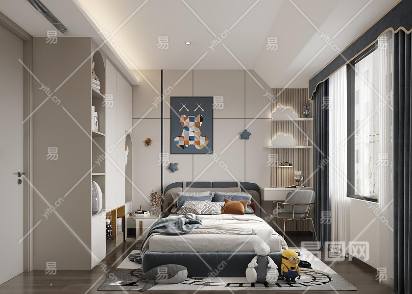现代男孩儿童房3D模型下载