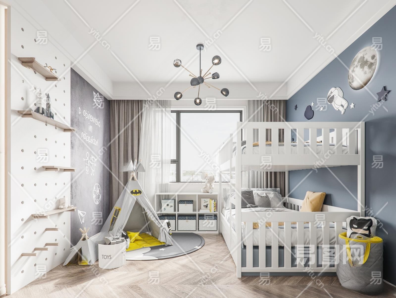 现代男孩儿童房3D模型下载