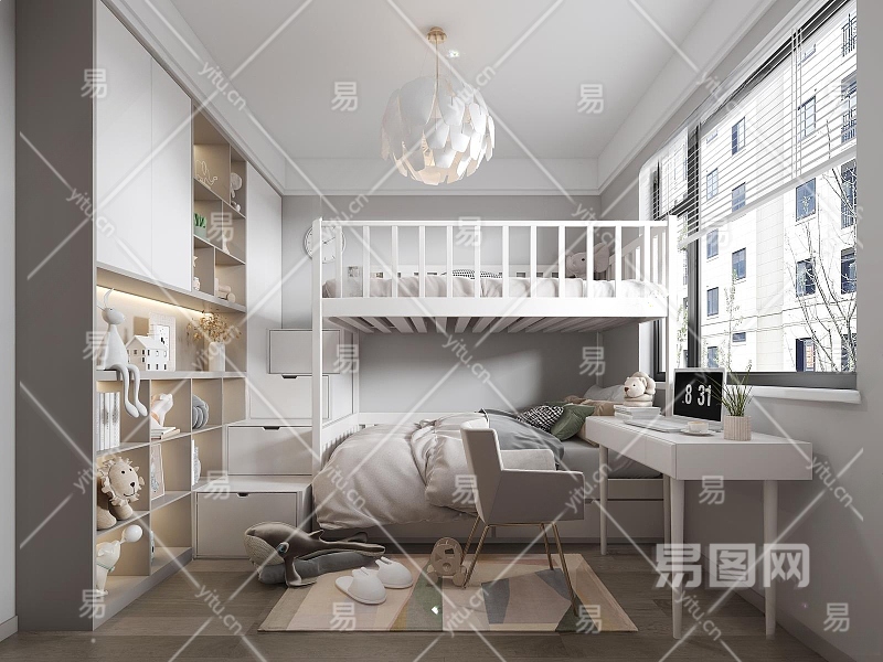 现代通用儿童房3D模型下载