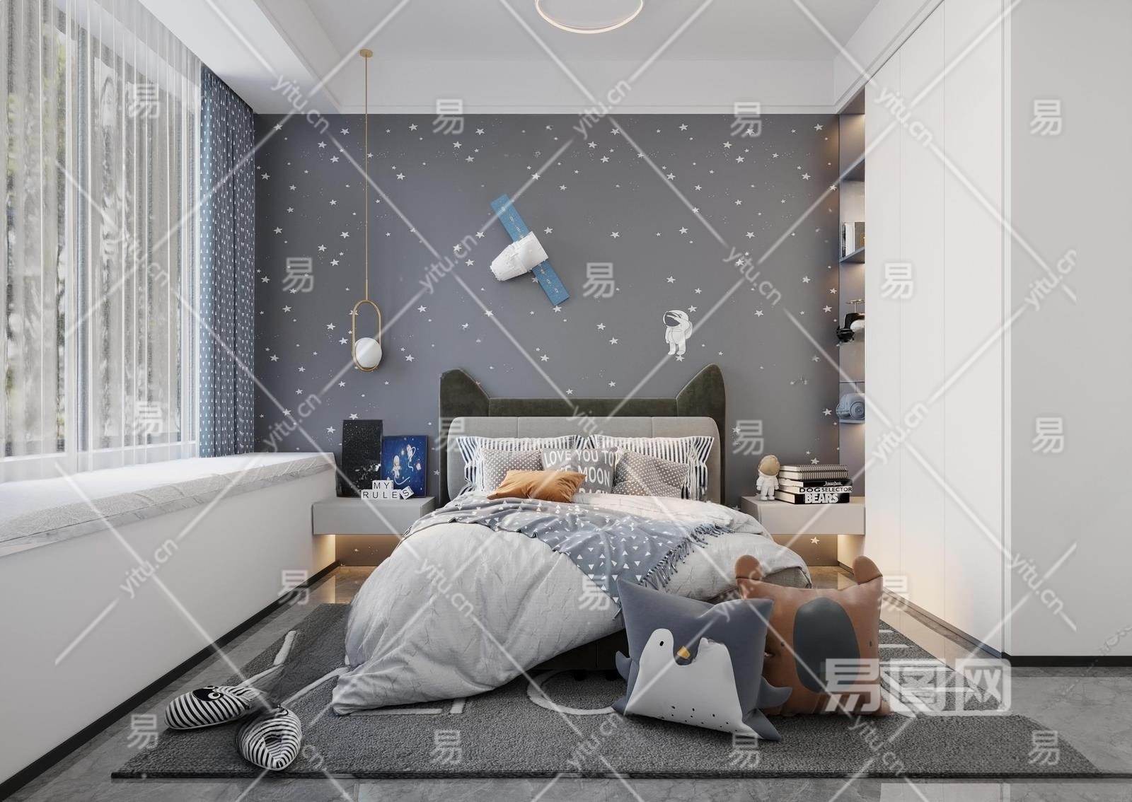 现代男孩儿童房3D模型下载