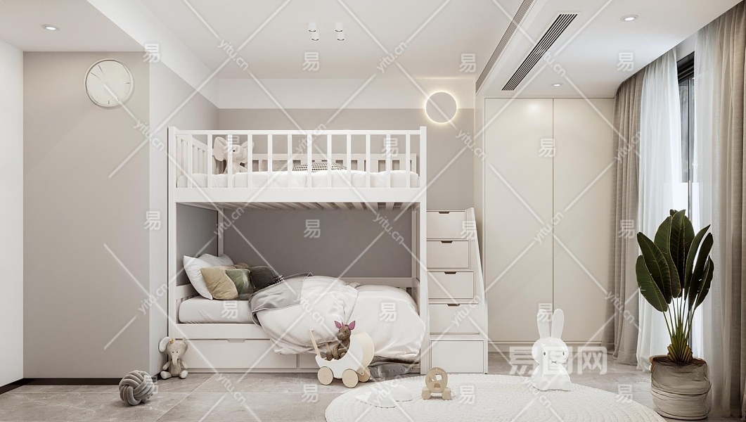 现代上下铺儿童房3D模型下载