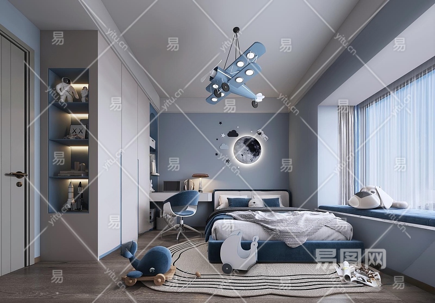 现代男孩儿童房3D模型下载