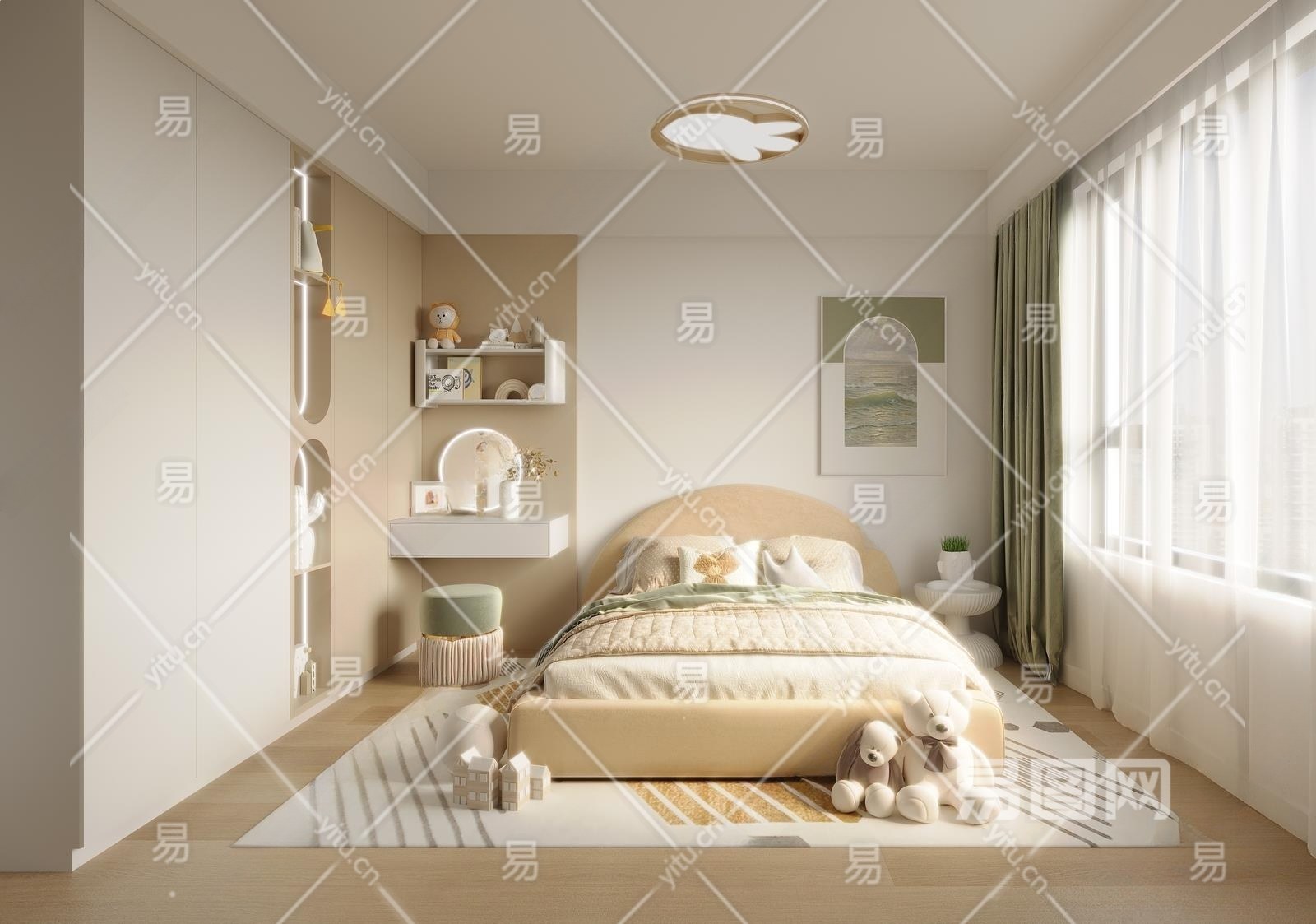 现代通用儿童房3D模型下载