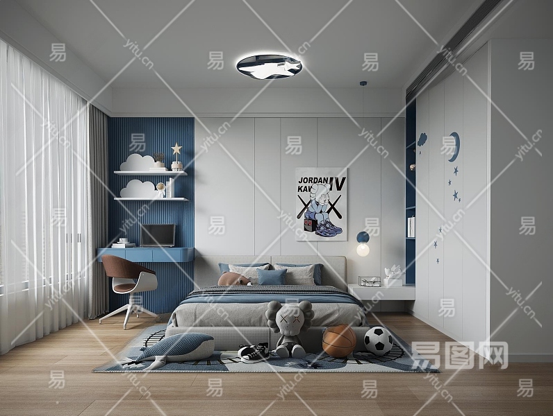 现代男孩儿童房3D模型下载