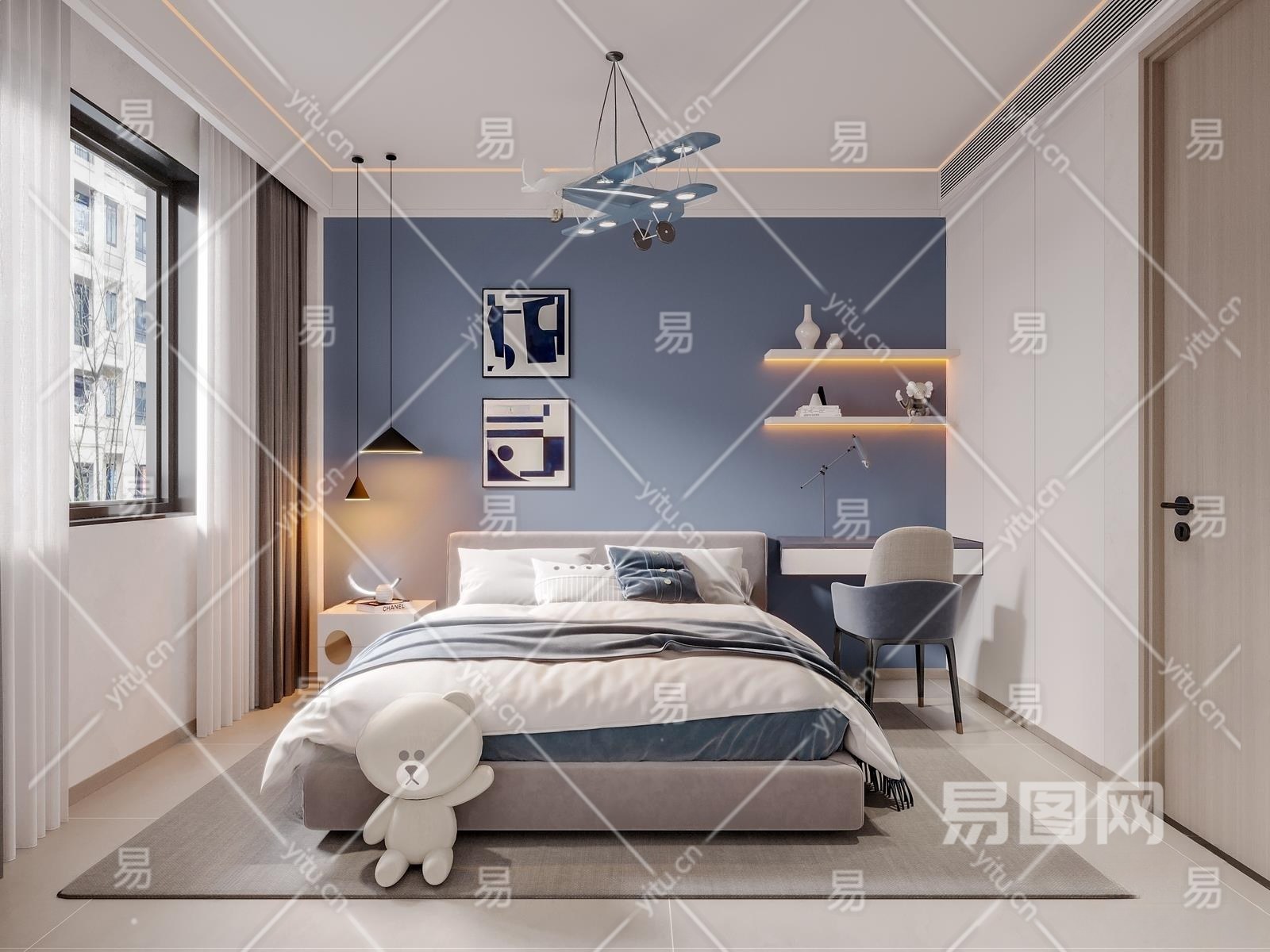 现代男孩儿童房3D模型下载