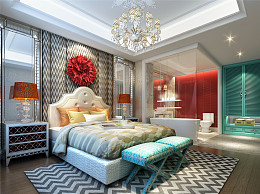 简欧 现代 女儿房 床 床头柜 台灯吊灯