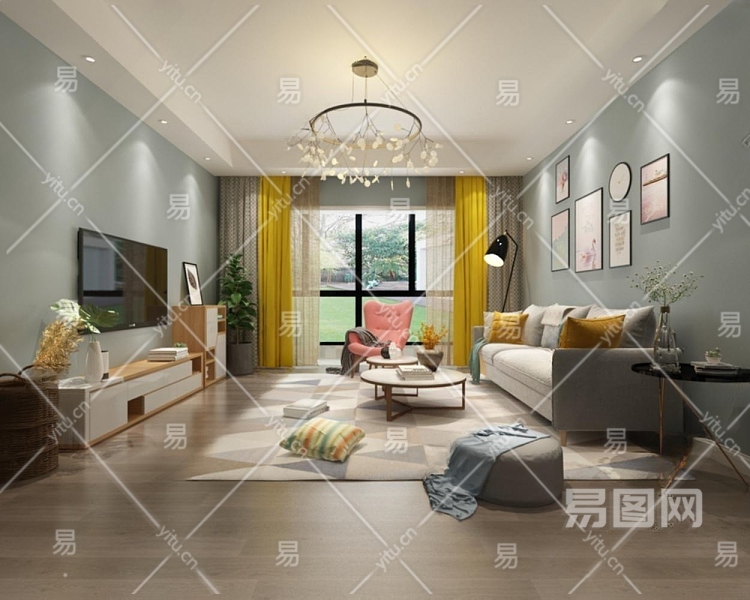 北欧客餐厅卧室图3D模型下载