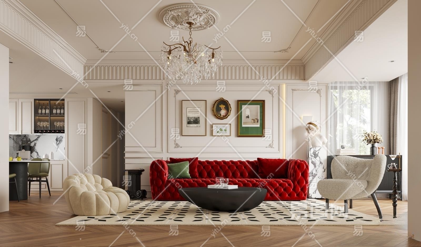 材质CR材质 贴图有贴图 灯光CR灯光 风格法式