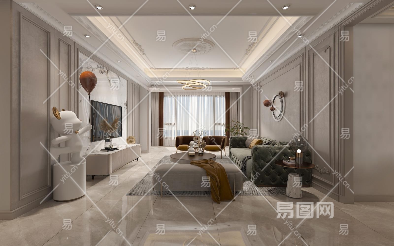 材质VR材质 贴图有贴图 灯光VR灯光 风格简欧