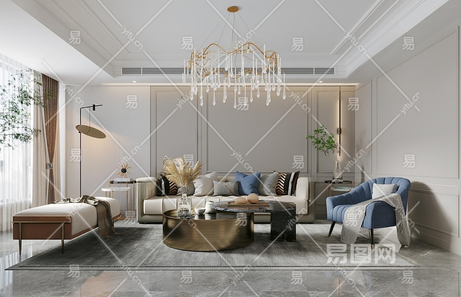材质VR材质 贴图有贴图 灯光VR灯光 风格简欧