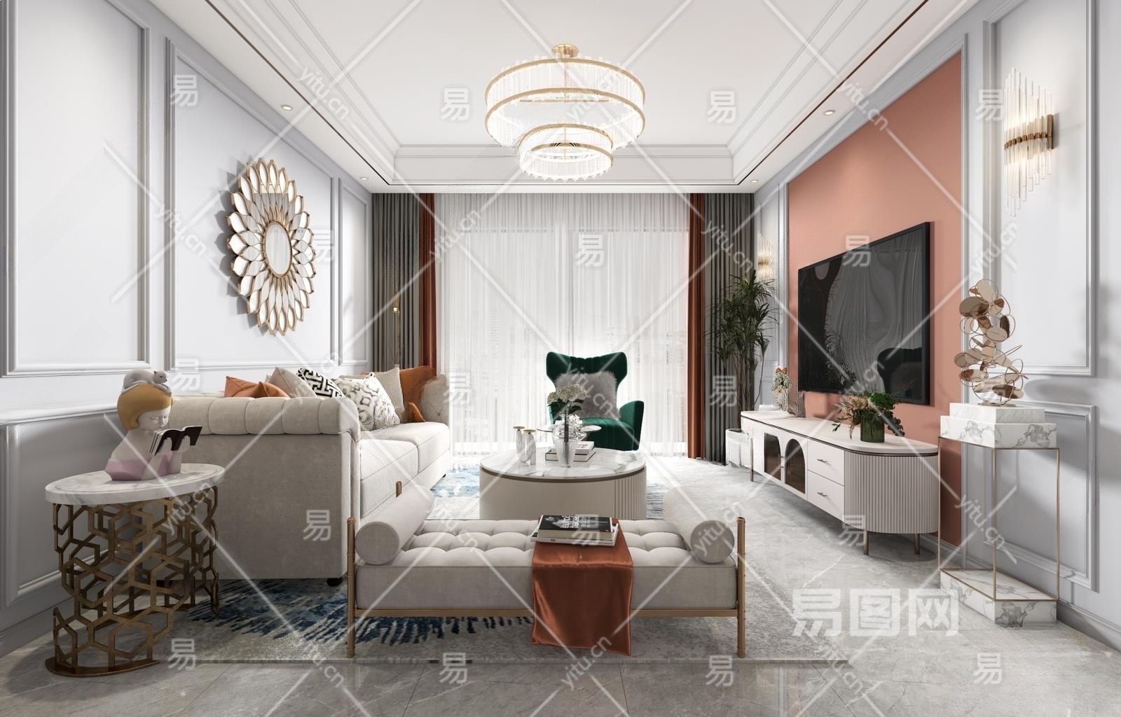 材质VR材质 贴图有贴图 灯光VR灯光 风格简欧