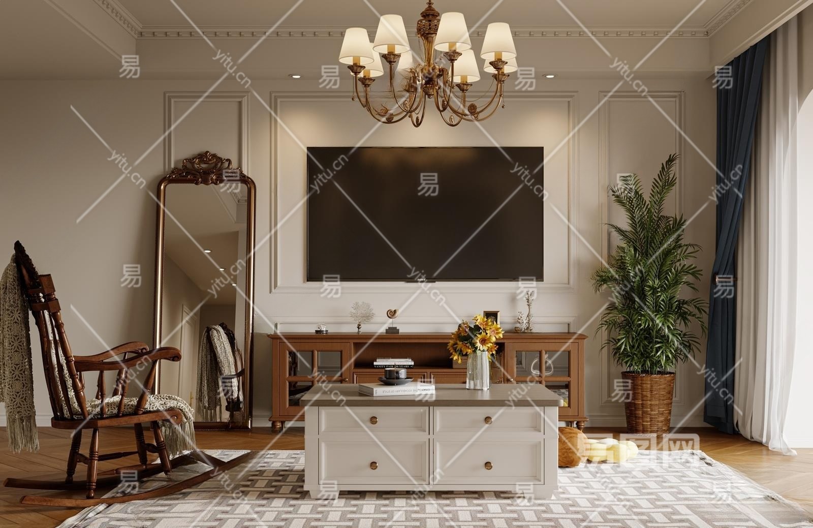 材质CR材质 贴图有贴图 灯光CR灯光 风格美式