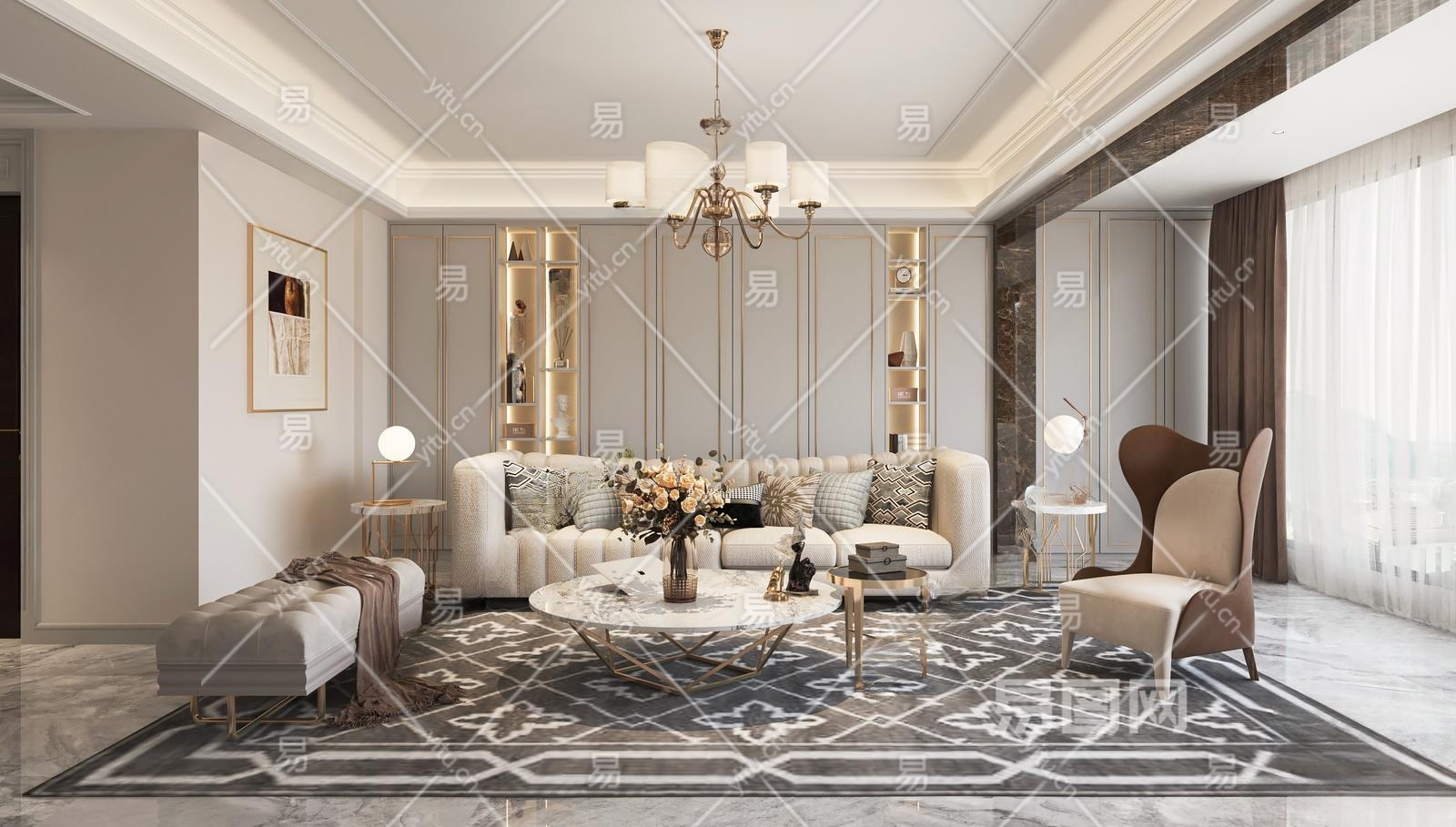 材质VR材质 贴图有贴图 灯光VR灯光 风格美式
