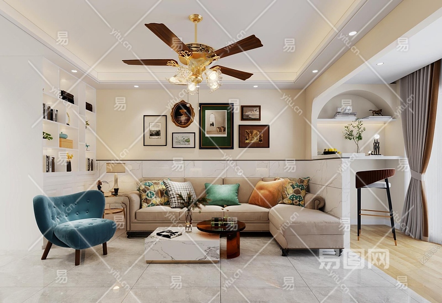 材质VR材质 贴图有贴图 灯光VR灯光 风格美式