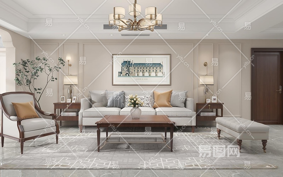 材质VR材质 贴图有贴图 灯光VR灯光 风格美式