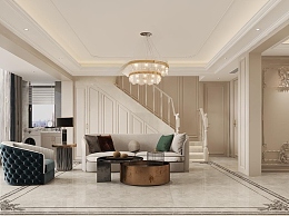 美式别墅客餐厅3D模型下载