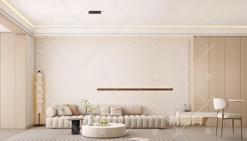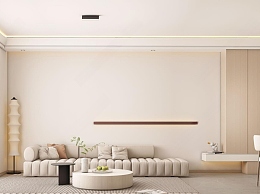 现代奶油风客餐厅3D模型下载