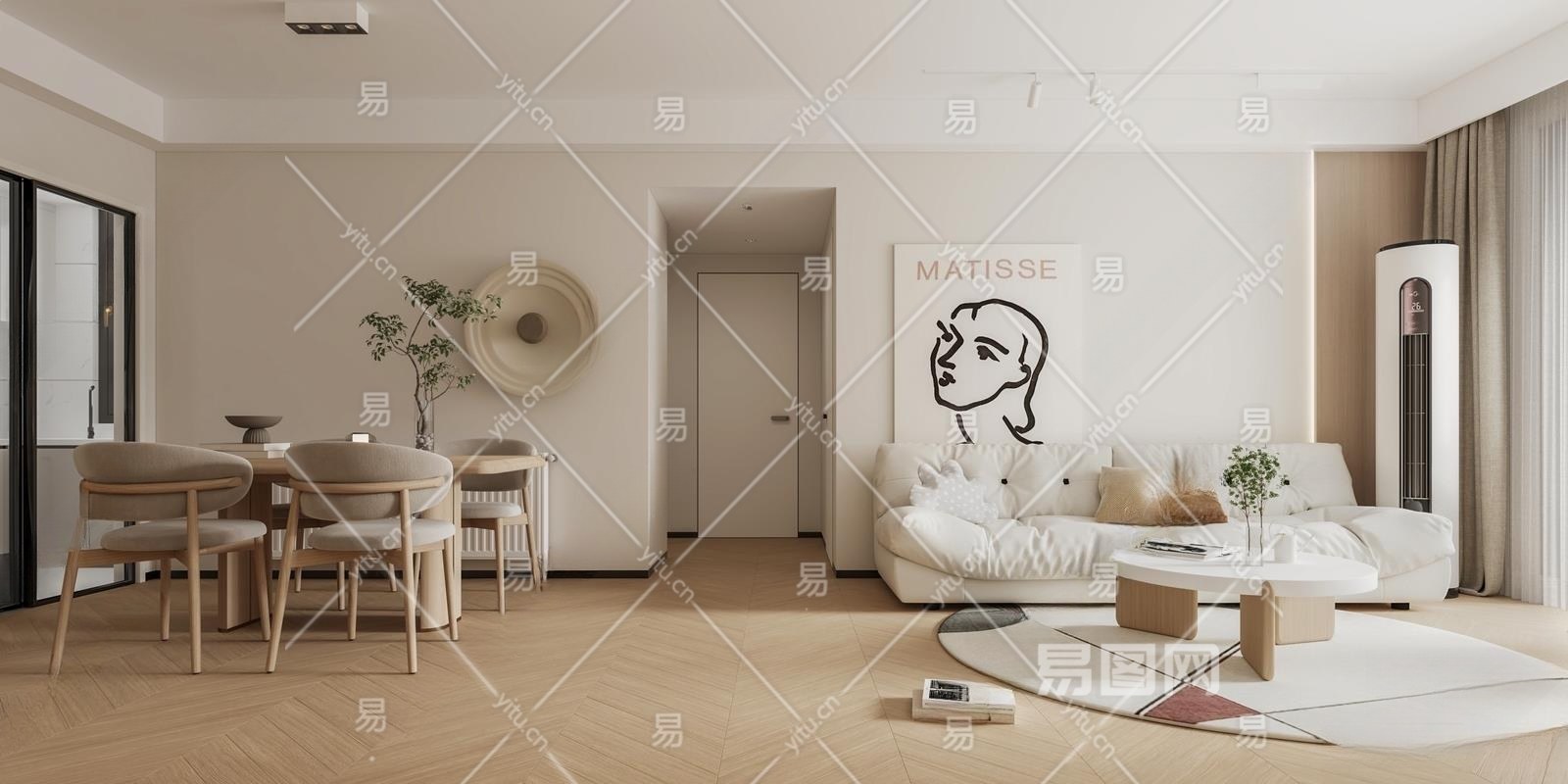 现代奶油风客餐厅3D模型下载