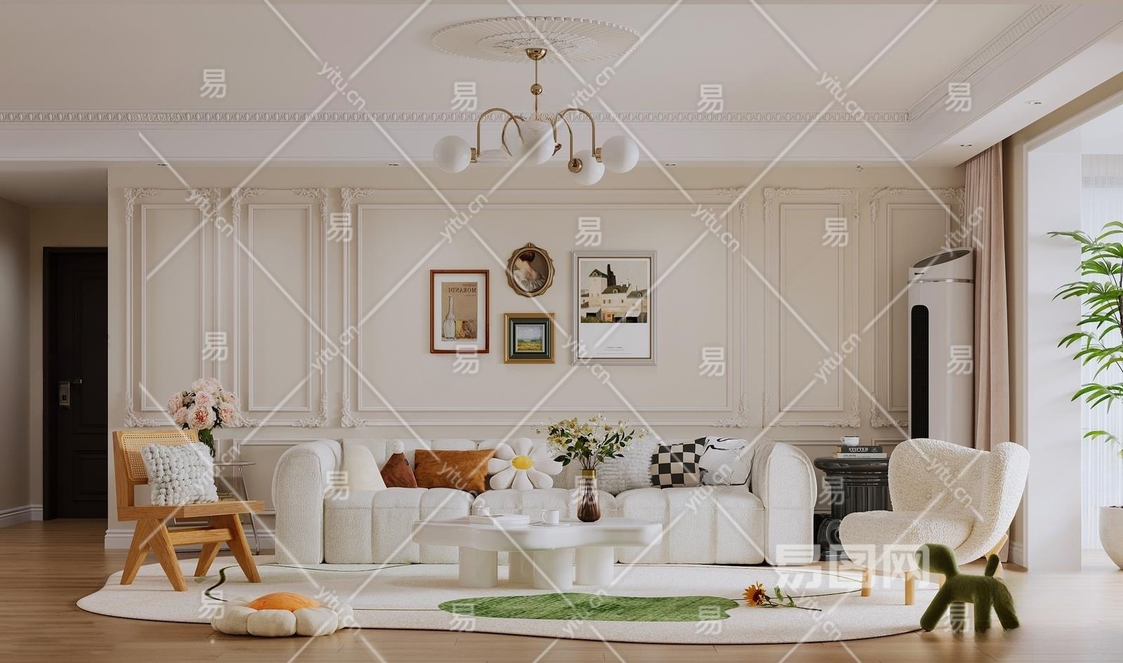 法式奶油风客餐厅3D模型下载