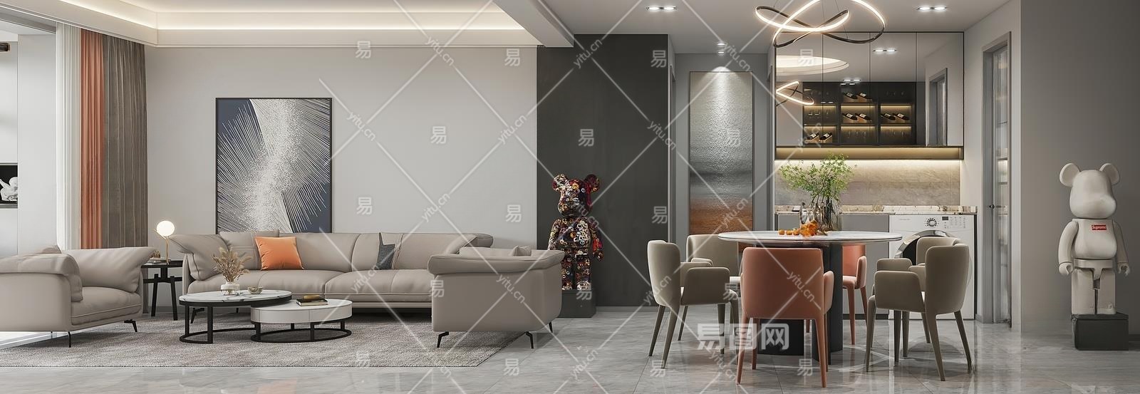 现代客餐厅3D模型下载