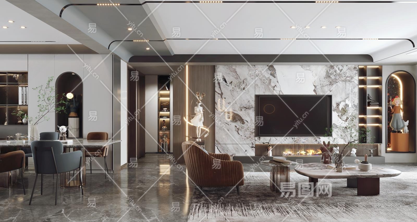 现代客餐厅3D模型下载