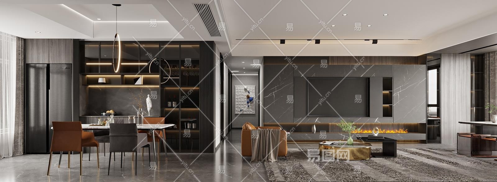 现代客餐厅3D模型下载