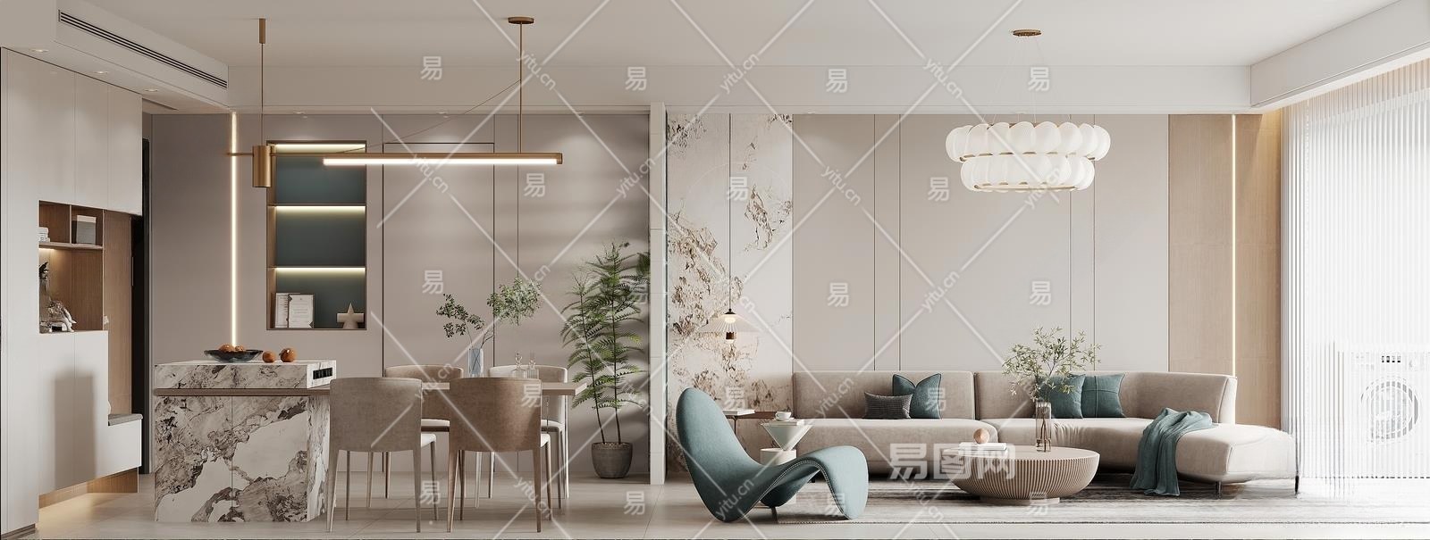 现代客餐厅3D模型下载
