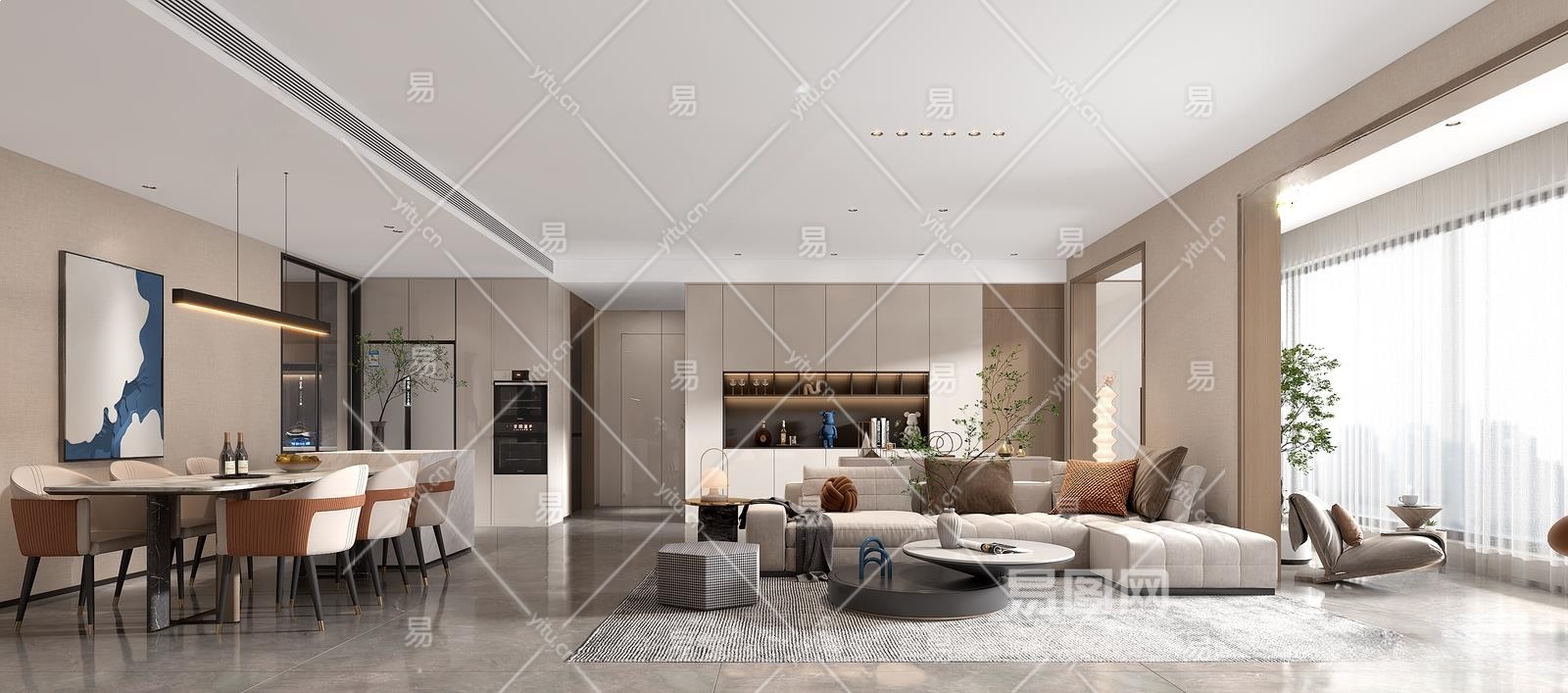 现代客餐厅3D模型下载