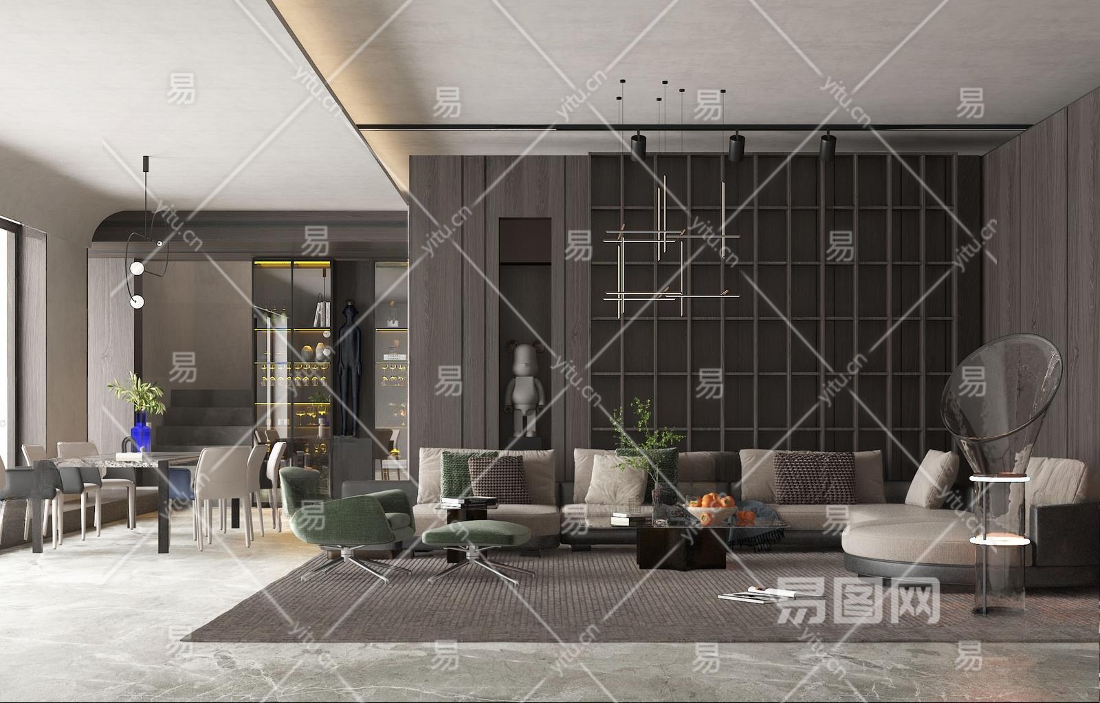 现代客餐厅3D模型下载