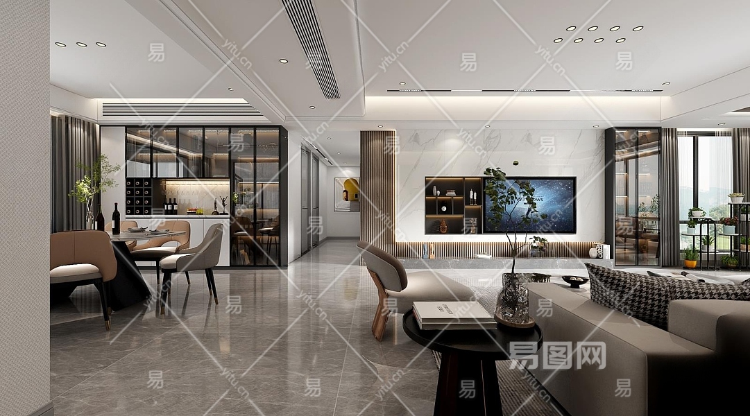 现代客餐厅3D模型下载