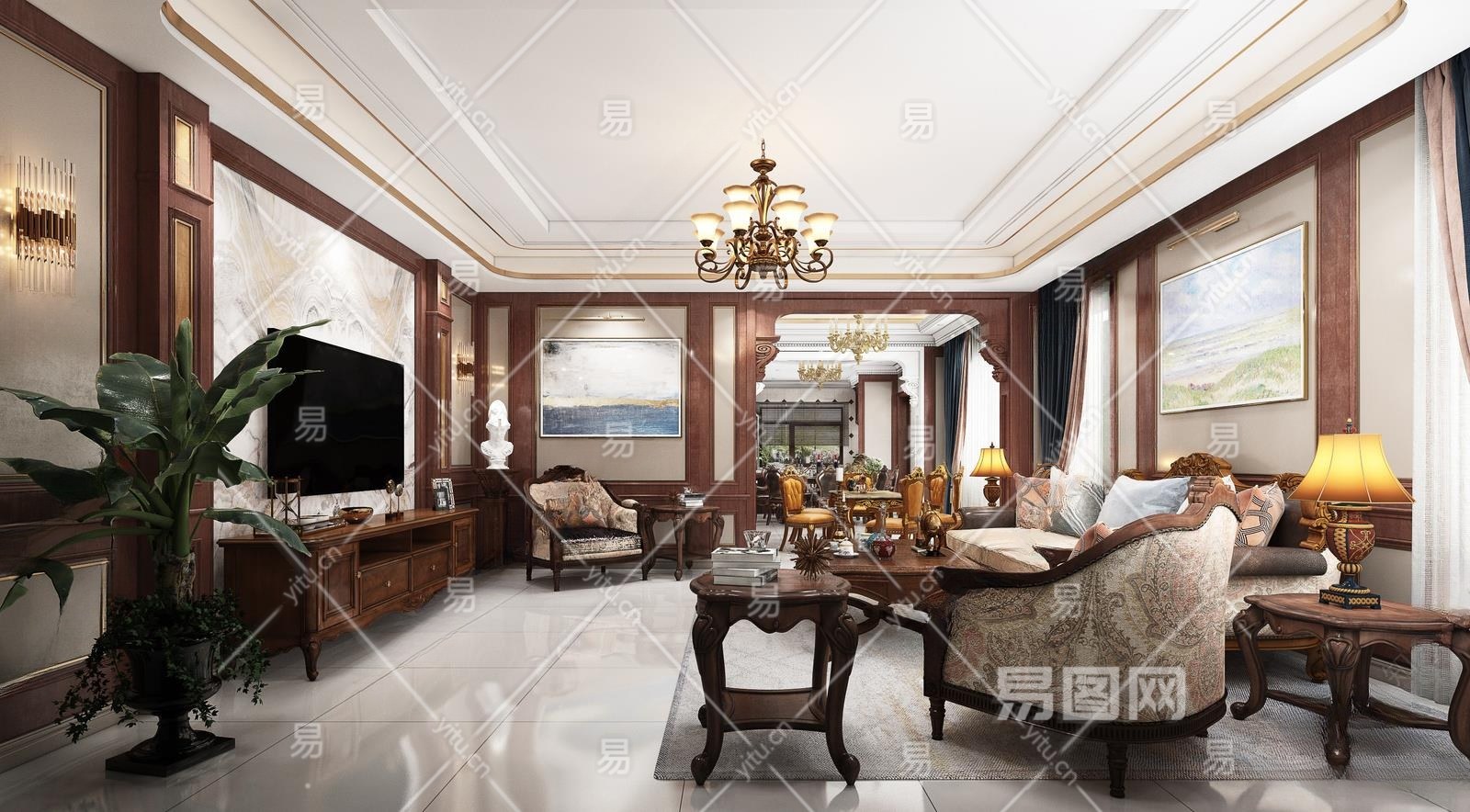 欧式古典客餐厅3D模型下载