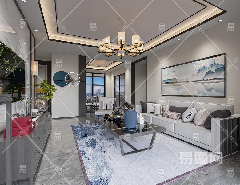 新中式客餐厅3D模型下载