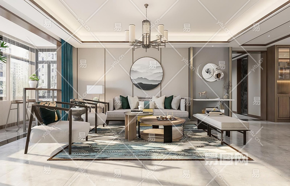 新中式客餐厅3D模型下载