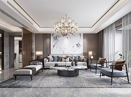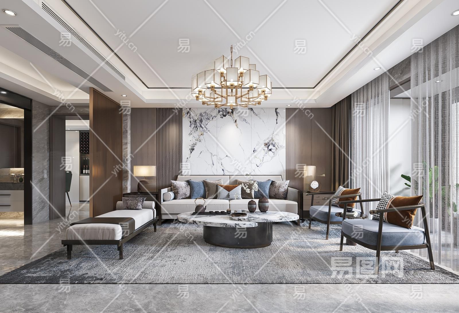 新中式客餐厅3D模型下载
