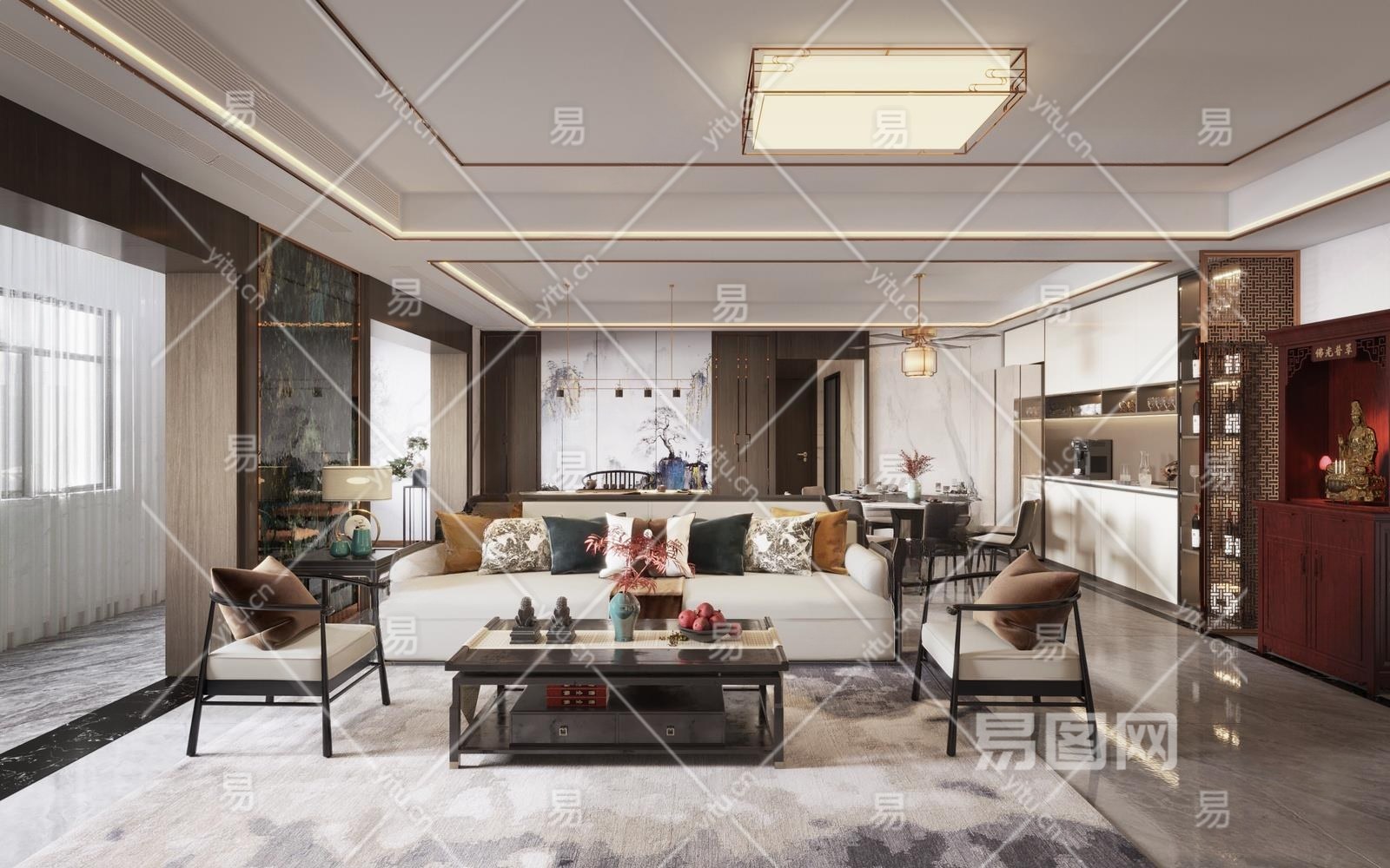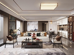 新中式客餐厅3D模型下载