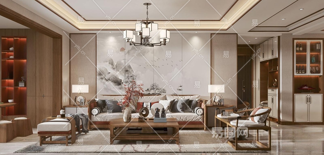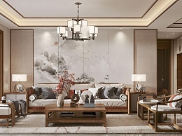 新中式客餐厅3D模型下载