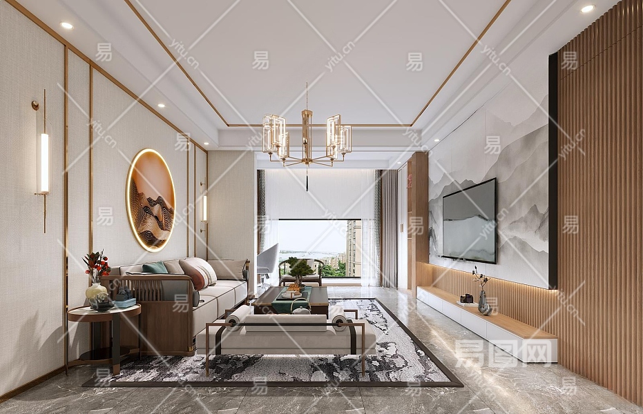 新中式客餐厅3D模型下载