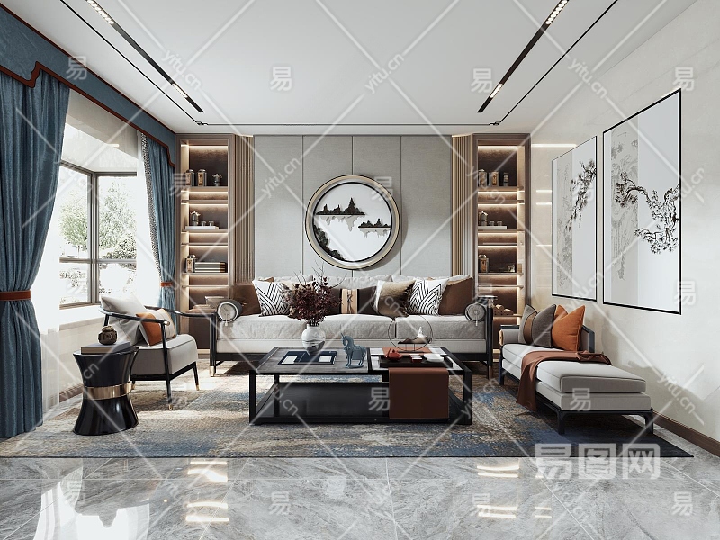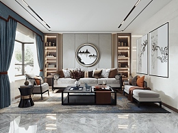 新中式客餐厅3D模型下载